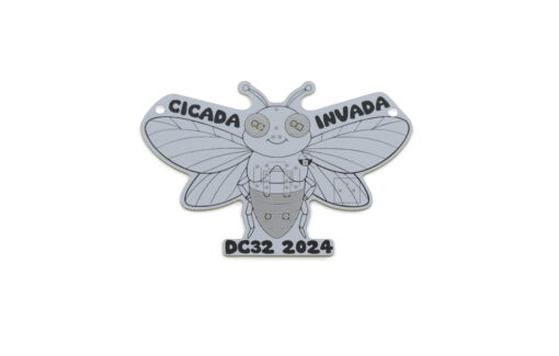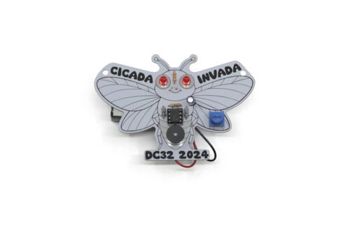This badge was made to raise money for Hak4Kidz events. This DIY, learn to solder badge is an evolution of the Cricket Badge. The circuit includes two red LEDS and a potentiometers for you to fidget away the day changing the speed of the audio output.