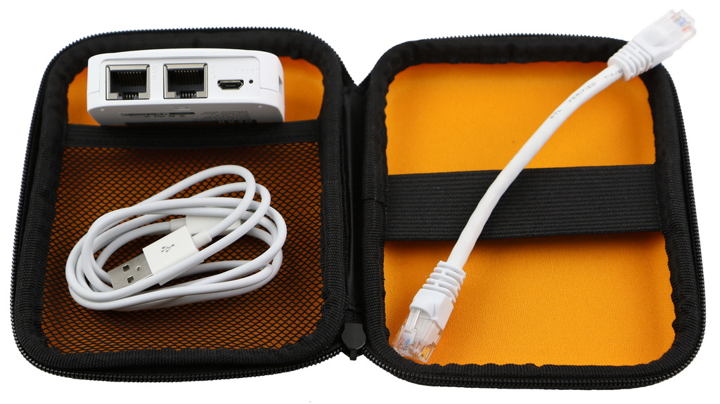Also includes: case, usb cable, 6 inch cat5e cable